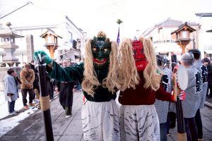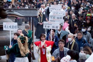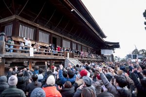 2026年2月3日 善光寺本堂の回廊から福男福女が声高らかに |